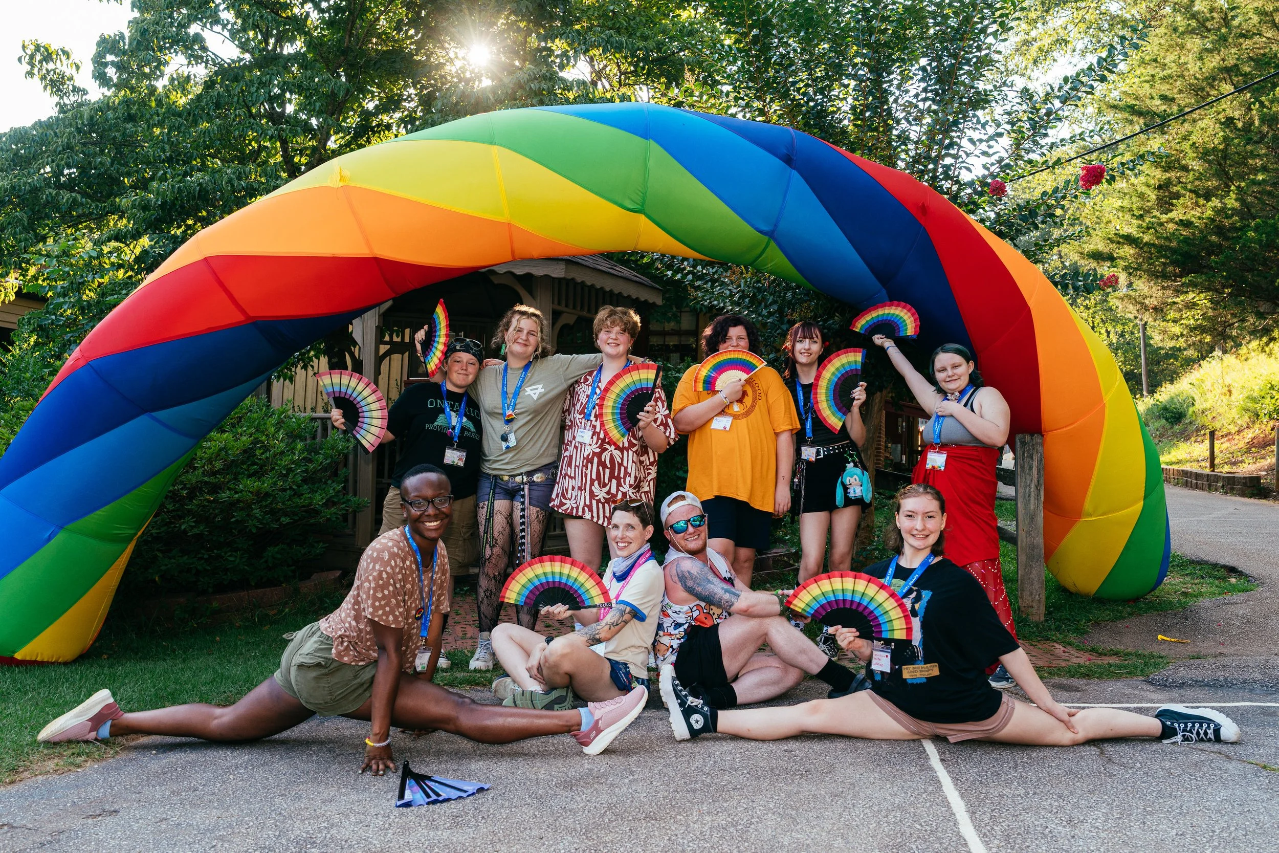 The Ten Oaks Project offers overnight summer camps for 2SLGBTQ+ youth and children from LGBTQ+ families. With two locations and nearly 200 campers each summer, Ten Oaks combines outdoor adventure with intentional community building. Campers enjoy swimming, ropes courses, climbing walls, and group games designed to build confidence, independence, and self‑esteem.